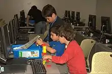 Niños en un programa sobre la robótica del verano en el Instituto Tecnológico y de Estudios Superiores de Monterrey, Campus Ciudad de México.