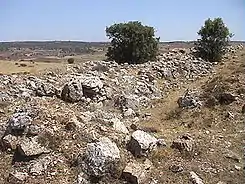 ![]() Restos de la muralla de la antigua ciudad celtíbera, posterior asentamiento romano. | ||