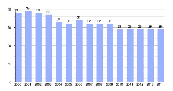 Población de derecho (2000-2014) según los censos de población del INE a 1 de enero de cada año.[1] |