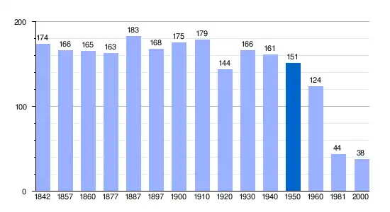 Gráfica de evolución demográfica de Camparañón (municipio) entre 1842 y 2000 |