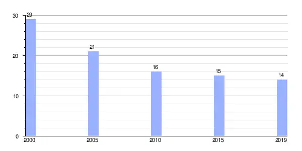 Gráfica de evolución demográfica de Campelo entre 2000 y 2019 |