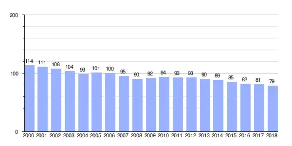 Gráfica de evolución demográfica de Campelo (parroquia) entre 2000 y 2018 |