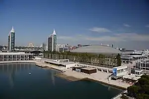 ![]() El Parque de las Naciones con la «Doca dos Olivais», en primer término, y la MEO Arena. | |||||