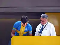 Thomas Lövkvist, vestido con el maillot de campeón de Suecia en el Tour de Francia 2006