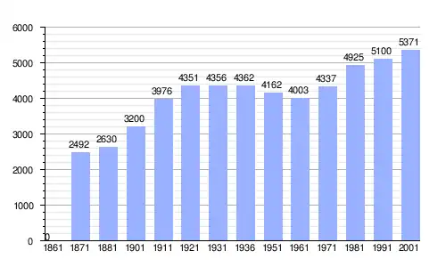 Gráfica de evolución demográfica de Campo San Martino entre 1861 y 2001 |