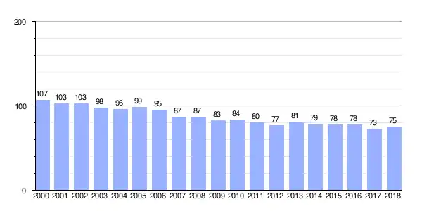 Gráfica de evolución demográfica de Campo da Lanza entre 2000 y 2018 |