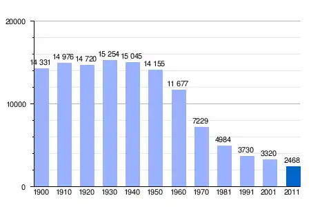 Población de hecho (1900-1991) o población residente (2001) según los censos de población del INE. Población según el padrón municipal de 2011 del INE. |