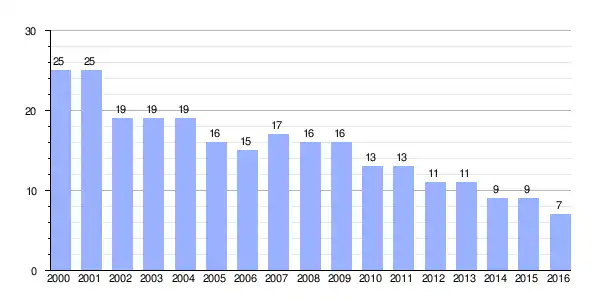 Gráfica de evolución demográfica de Campo de Liebre[2] entre 2000 y 2016 |