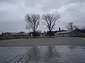 - Depósito de cadáveres, zona de fusilamiento y edificio de cámara de gas (ya no existe, edificio blanco)