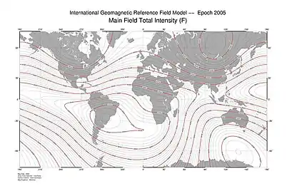 - Lowes, F.J. (January 2010). «The International Geomagnetic Reference Field: A "Health" Warning». IAGA working group V-MOD: Geomagnetic Field Modeling. Archivado desde el original el 30 de junio de 2018.