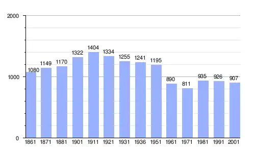 Gráfica de evolución demográfica de Campo di Giove entre 1861 y 2001 |
