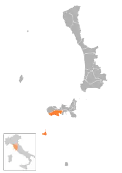 Ubicación de la ciudad de Campo nell'Elba dentro de la provincia de Livorno.