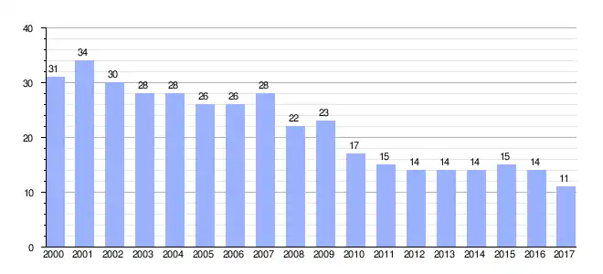 Gráfica de evolución demográfica de Campocerrado[12] entre 2000 y 2017 |