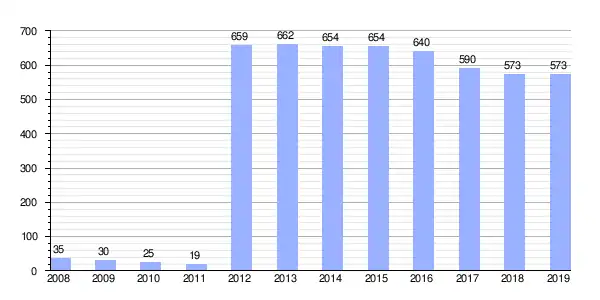 Gráfica de evolución de Deuda viva del Ayuntamiento de Campofrío entre 2008 y 2019 |