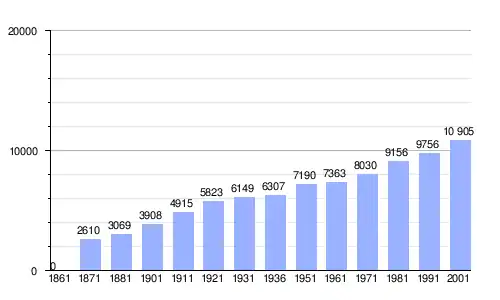 Gráfica de evolución demográfica de Camponogara entre 1861 y 2001 |
