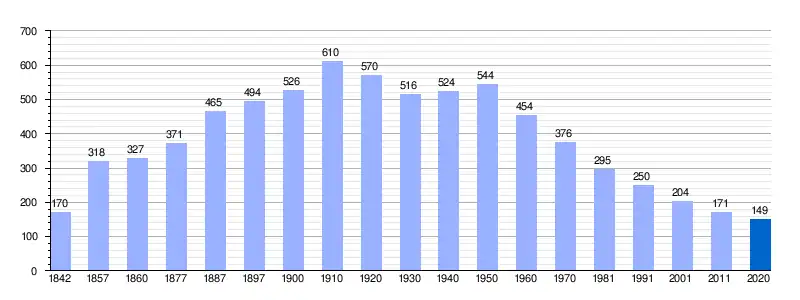 Población de derecho (1842-1991, excepto 1857 y 1860 que es población de hecho) o población residente (2001-2011) según los Censos de Población desde 1842. Población según el padrón municipal de 2020 del INE. |