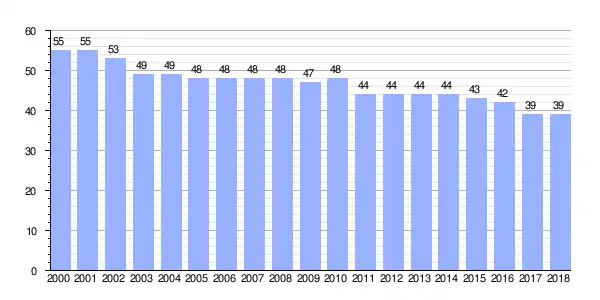 Gráfica de evolución demográfica de Campos entre 2000 y 2018 |