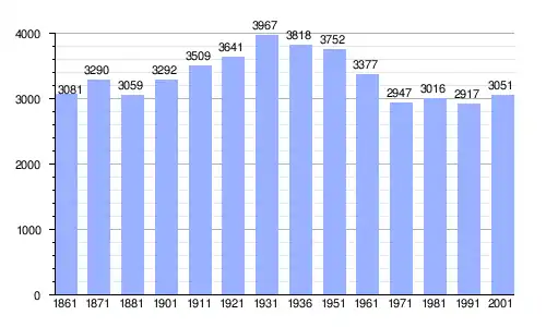 Gráfica de evolución demográfica de Camposanto entre 1861 y 2001 |