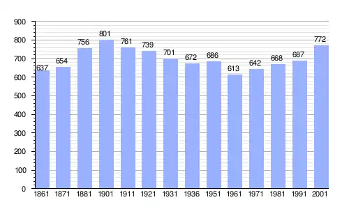 Gráfica de evolución demográfica de Campospinoso entre 1861 y 2001 |