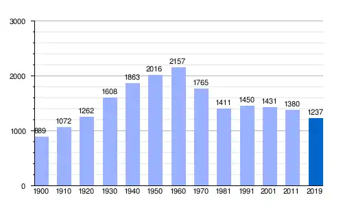 Gráfica de evolución demográfica de Campotéjar entre 1900 y 2019 |