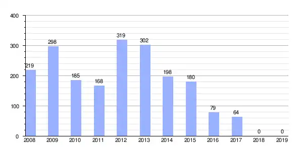 Gráfica de evolución de Deuda viva del Ayuntamiento de Campotéjar entre 2008 y 2019 |