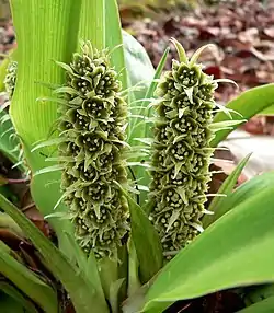 Tiene los rizomas ligeramente alargados, cilíndricos, de 1 a 1,5 cm de espesor. Las hojas 4-8 (- 12), basales, dísticas, con pecíolo de 3-8 cm, por lo general conduplicadas; limbo linear-lanceolado a oblanceolado, 15 - 65 × 1,5 a 9,5 cm. Las inflorescencias en pico de 2,5 a 14 cm, con varias brácteas estériles apicales; pedúnculo 1 - 6 (- 15) cm. El perianto acampanado, de 5-7 mm, tubo de 2 a 2,5 mm. Los frutos en forma de bayas de color rojo púrpura en la madurez, globosas, de 8 - 10 mm de diámetro. Florece en abril-junio, y fructifica en septiembre-noviembre.[1]
