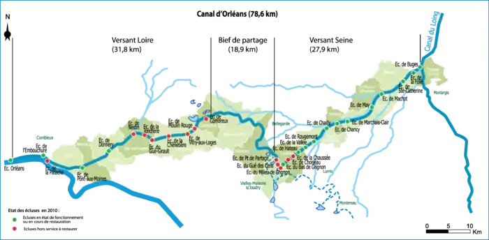 Únicamente una sección es navegable en 2010. Se encuentra entre Fay-aux-Loges y Combleux.[Et. 1]