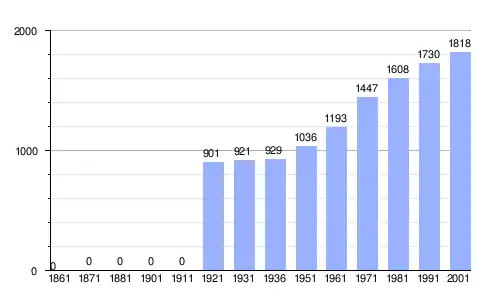Gráfica de evolución demográfica de Canazei entre 1861 y 2001 |