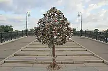 - En Dublín, Irlanda, los candados en el puente Ha'penny Bridge en el Río Liffey fueron retirados por el ayuntamiento de la ciudad de Dublín a principios de 2012. Los miembros del ayuntamiento dijeron que los candados podrían dañar la estructura. "Parece que esto comenzó a suceder en los últimos meses y estamos pidiendo a las personas que no lo hagan", dijo un miembro del ayuntamiento de Dublín. Algunos candados también han sido retirados del Puente Millennium, cerca de Ha'penny Bridge, en el centro de la ciudad, dijo el ayuntamiento. Los candados han sido criticados por ser mal vistos en estructuras públicas. También pueden causar más daños al ser quitados. El ayuntamiento confirmó que continuaría quitando los candados que estuvieran en los puentes del centro de la ciudad.[13]