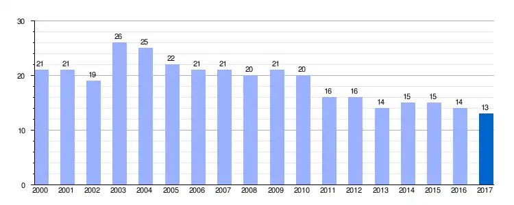 Gráfica de evolución demográfica de Candanedo de Boñar entre 2000 y 2017 |