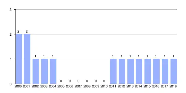Gráfica de evolución demográfica de Canedo entre 2000 y 2018 |