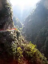 En 1991, comenzó la construcción de una calzada pavimentada que corre de norte a sur desde la parte superior de la estación del telesilla, cerca de la antigua Dalí. Este camino pasa por varias cascadas, y tiene vistas al lago Erhai y la antigua ciudad. Este camino se llama "Jade-Cloud Road" después de las formaciones que aparecen en los picos Cangshan. La construcción fue terminada en 1992[3] y en 2004 un nuevo proyecto se puso en marcha para ampliar la carretera y aumentar su longitud. La estación del telesilla de la ciudad de Dali en la ladera de la montaña es un complejo de templos, así como una posada de viajeros.