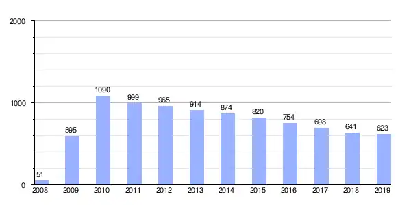 Deuda viva del Ayuntamiento de Canillas de Albaida en miles de Euros según datos del Ministerio de Hacienda y Ad. Públicas.[3]