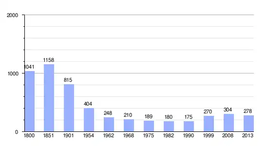 Gráfica de evolución demográfica de Cans-et-Cévennes entre 1800 y 2013 |