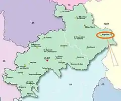 En aplicación del Decreto n.º 2014-193[2] de 20 de febrero de 2014, el cantón de Aiguilles fue suprimido el 22 de marzo de 2015 y sus 7 comunas pasaron a formar parte del nuevo cantón de Guillestre.