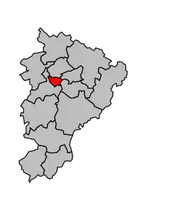 ![]() Situación del cantón de Angulema-Oeste (mapa de los tres cantones)