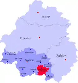 En aplicación del Decreto nº 2014-218[2] de 21 de febrero de 2014, el cantón de Beaumont-du-Périgord fue suprimido el 22 de marzo de 2015 y sus 12 comunas pasaron a formar parte del nuevo cantón de Lalinde.