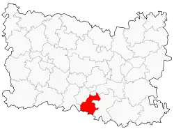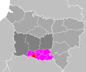 Localización del cantón de Chantilly (rojo) respecto del distrito de Senlis (rosa) y del departamento de Oise (gris oscuro).