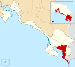 ![]() Ubicación del cantón de Golfito en la provincia de Puntarenas | ||||