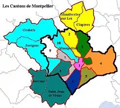 En aplicación del Decreto nº 2014-258[2] de 26 de febrero de 2014, el cantón de Montpellier-6 fue suprimido el 22 de marzo de 2015 y la fracción de la comuna que le daba su nombre se unió con las demás para que, por medio de una reestructuración cantonal, fueran creados los nuevos cantones de Montpellier-1, Montpellier-2, Montpellier-3, Montpellier-4, Montpellier-5 y Montpellier-Castelnau-le-Lez.