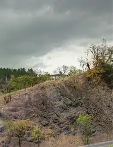 La tercera unidad, de remoción en masa, se encuentra en el norte del cantón, y presenta grietas longitudinales e irregularidades abundantes. Está compuesta por areniscas, conglomerados y lutitas, todas muy meteorizadas.[7]