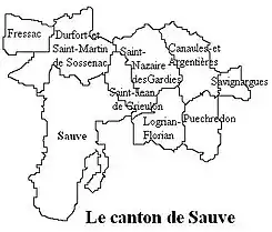 En aplicación del Decreto n.º 2014-232[2] de 24 de febrero de 2014, el cantón de Sauve fue suprimido el 22 de marzo de 2015 y sus 9 comunas pasaron a formar parte del nuevo cantón de Quissac.