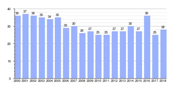 Gráfica de evolución demográfica de Cantalarrana entre 2000 y 2018 |