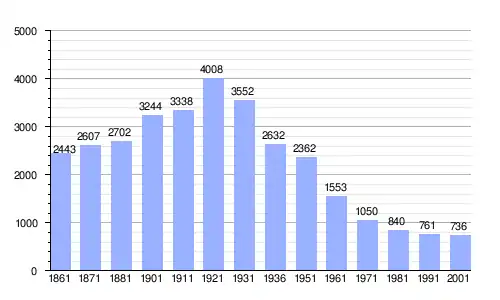 Gráfica de evolución demográfica de Cantalupo nel Sannio entre 1861 y 2001 |