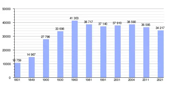 Gráfica de evolución demográfica de Cantanhede entre 1801 y 2021 |