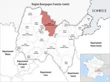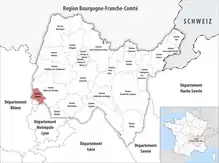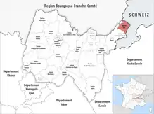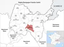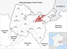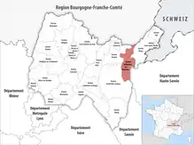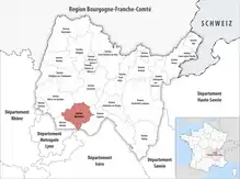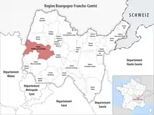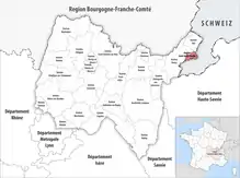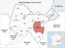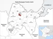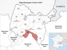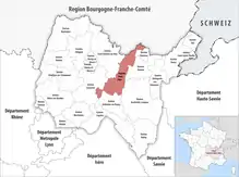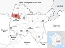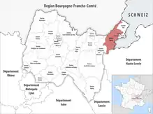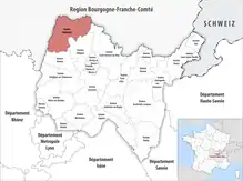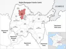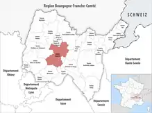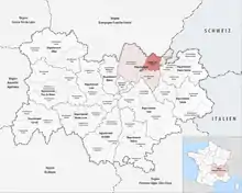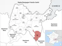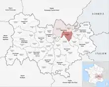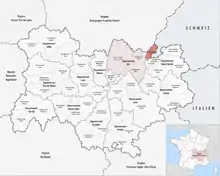 Belley[1] | Belley (subprefectura) | 9 | Ambérieu-en-Bugey - Belley - Champagne-en-Valromey - Hauteville-Lompnes - Lagnieu - Lhuis - Saint-Rambert-en-Bugey - Seyssel y Virieu-le-Grand | ![]() |