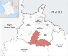 - Distrito de Rethel[2](6 cantones - subprefectura: Rethel):