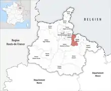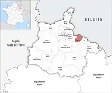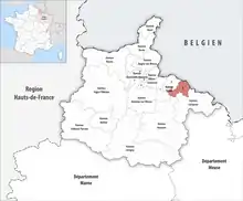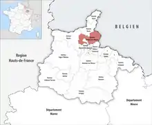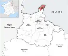 Charleville-Centro - Charleville-La Houillère - Flize - Fumay - Givet - Mézières-Centro-Oeste - Mézières-Este - Monthermé - Nouzonville - Omont - Renwez - Revin - Rocroi - Rumigny - Signy-l'Abbaye - Signy-le-Petit y Villers-Semeuse