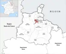 - Distrito de Charleville-Mézières[1](20 cantones - subprefectura: Charleville-Mézières):
