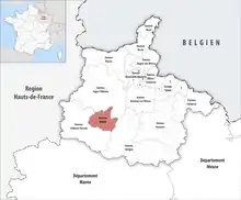 - Distrito de Sedán[3](6 cantones - subprefectura: Sedán):